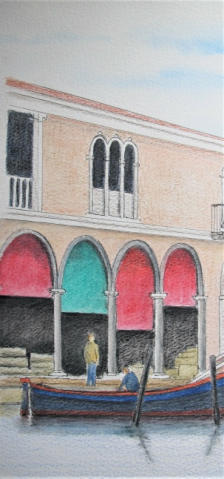 ABOVE: Firstly, here is the main reference photo which is a construct from more than one source. There were three photos used for the background row of buildings and the fish market, along with a separate photo of a gondolier.