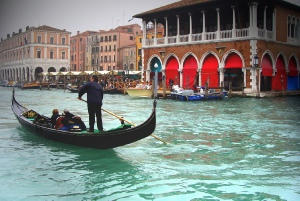 I do like the colour of that green/blue water with the red of the blinds in the archways in the gondolier photo.