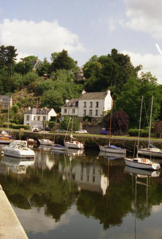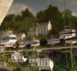 The old port at Pont Aven in Southern Brittany. Is this real or the reflection?Turn the scene—or your drawing—upside down.