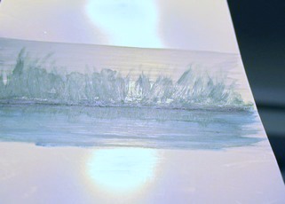 The Problem: Applying coloured pencils over a slick, non-absorbent acrylic layer or a very waxy soluble pencil layer can lead to poor adhesion – the pencil just slides off.