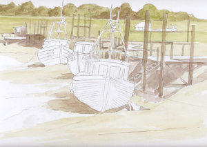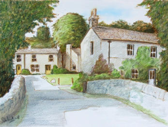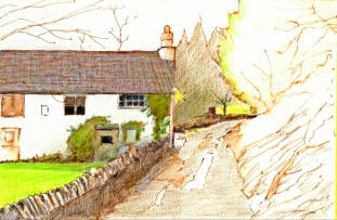 Below is another ink and coloured pencil study, of a Yorkshire village, where the brown ink under the coloured pencil makes a useful stone coloured link which holds the picture together.