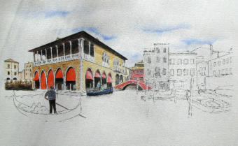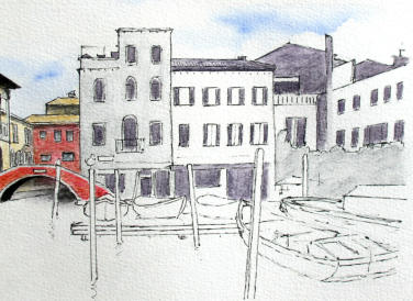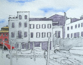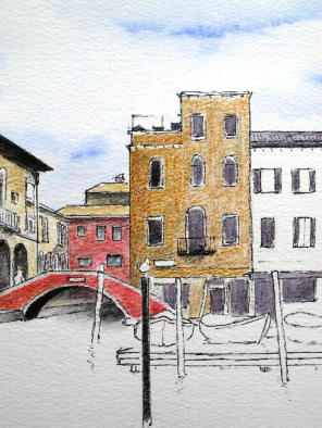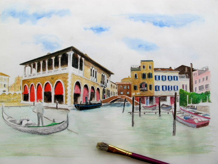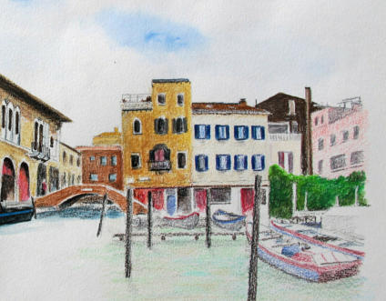 Before we continue painting Venice in watercolour pencils, here is a quick reminder. This is page four in this extended tutorial, and you can find a list of the preceding pages below.