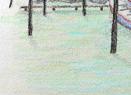 As I work on the mooring post, I leave a small white space on its right side. The paper's texture absorbs the pencil pigment in a way that made the valleys appear much lighter than the raised portions, creating too much contrast.