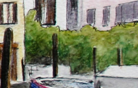 I present to you what I believe to be the final iteration of the Derwent picture. Additional details have been added in dry pencil, such as the Gondola, red blinds on the Fish Market, facing buildings, foliage on the right (with added shadow), and right-hand boats.