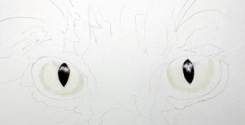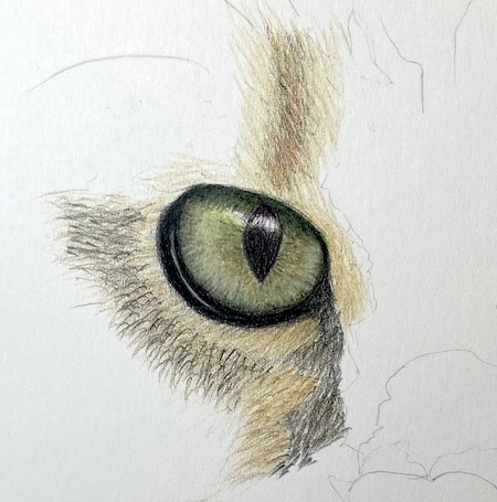 From this point on, I'll focus on the left eye. When drawing a realistic cat, you can work on the eyes separately or simultaneously.