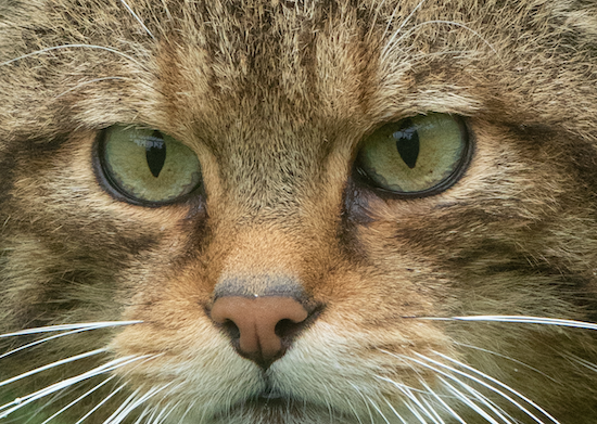 This stunning close-up of a Scottish wildcat was snapped during a lucky vacation encounter.