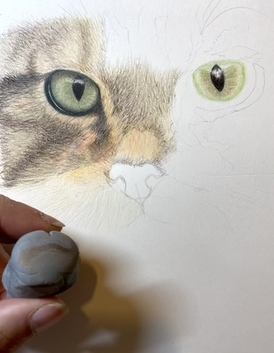 By kneading and stretching the eraser, I absorbed the unwanted pigment, preventing it from re-depositing onto the drawing's surface.