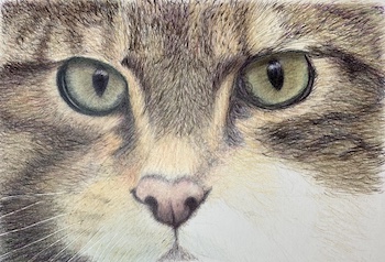 For this exercise on drawing a cat's fur and features with coloured pencils, feel free to use the provided outline instead of drawing it from scratch.