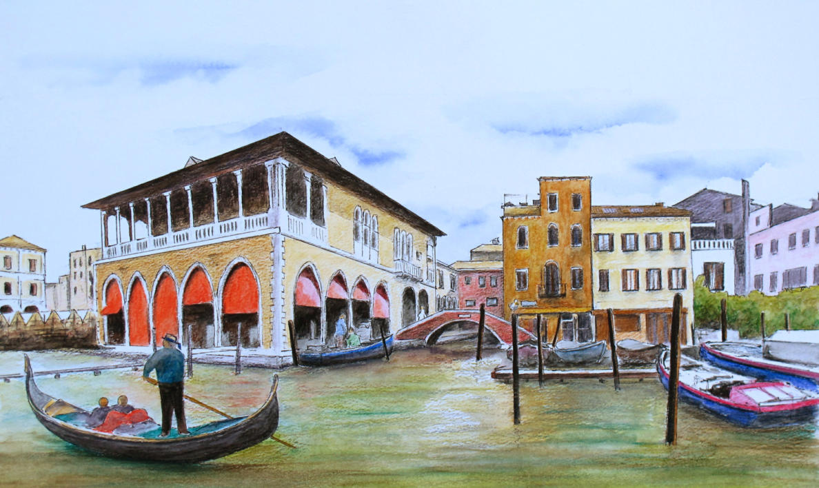 In the Spring of 2017, he did an on line step-by-step exercise using cold pressed watercolour paper (a challenge for watercolour pencils) and three different brands of aquarelles.