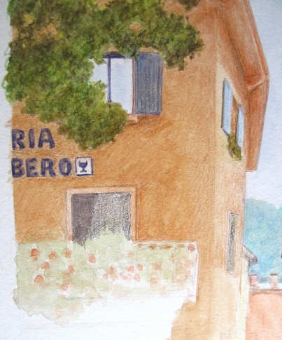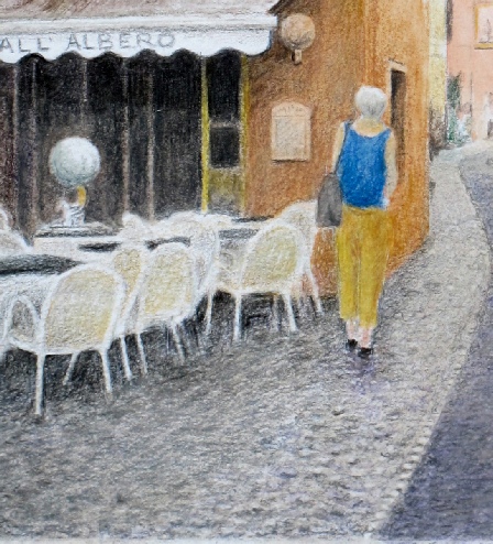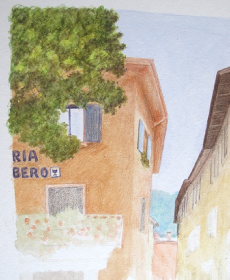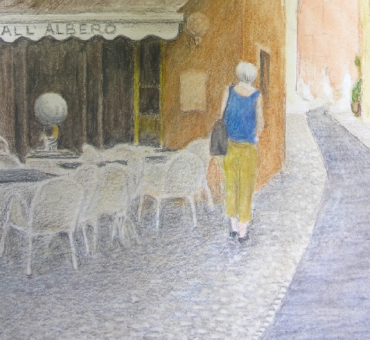 To add a touch of human interest to this watercolour pencil tutorial, I've included a photo from R.E. that captures the same scene with a lively pedestrian presence.
