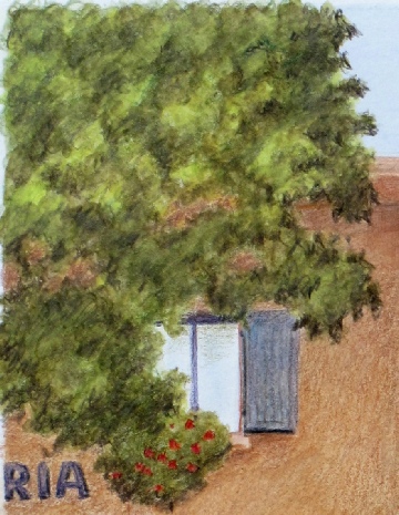 Notice how the door and window frames are subtly shaded, with darker tones at the top and lighter tones below, to capture the shadow's effect.