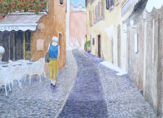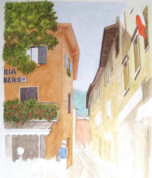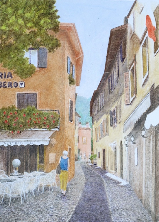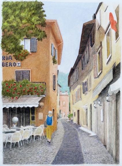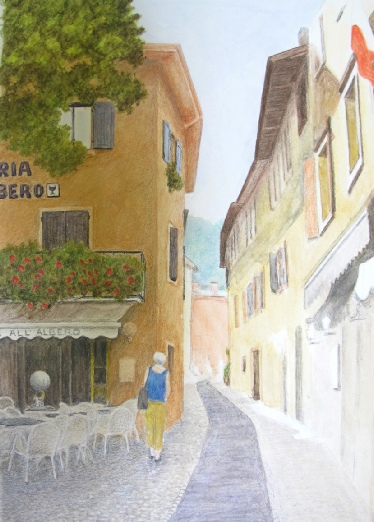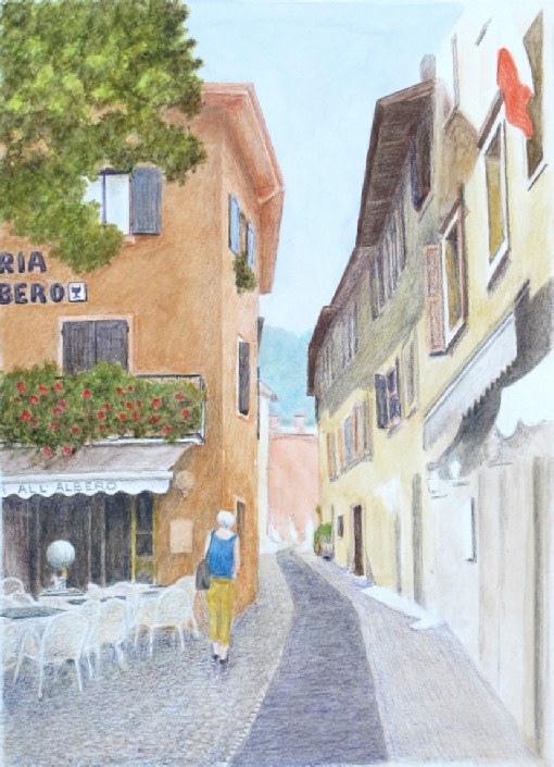 Italian Street Scene in Malcesine, Lake Garda Italy. Picture from a photo reference © 2006 Peter Weatherill